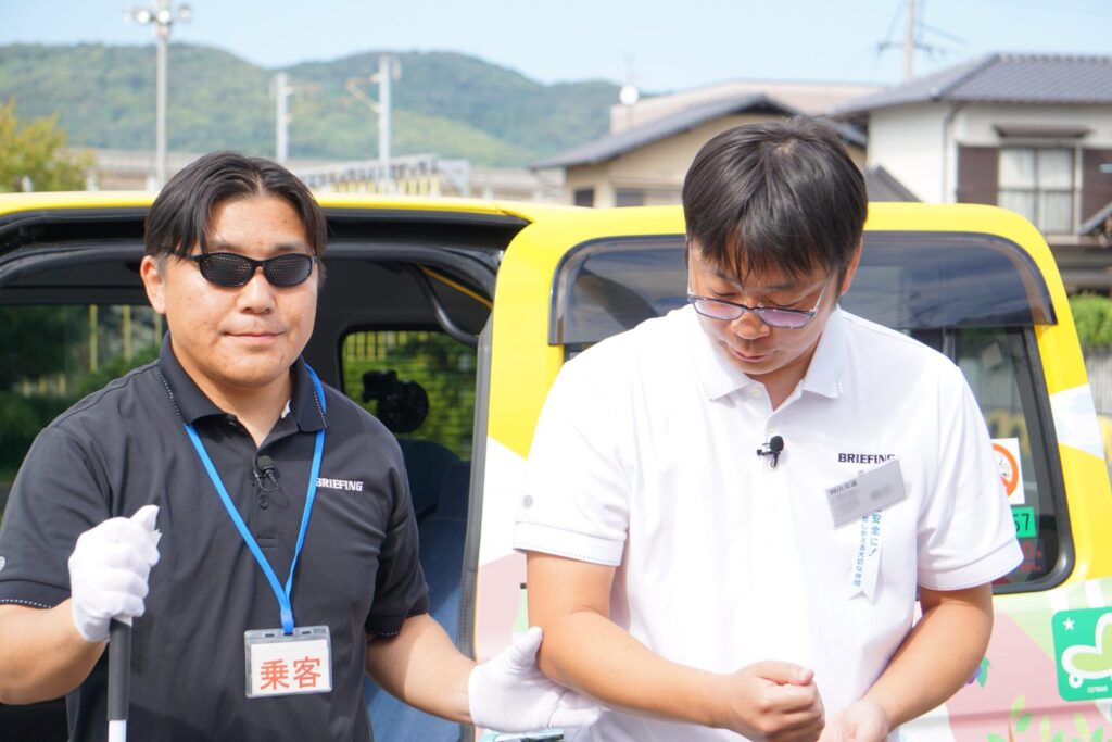 ご挨拶、ドアサービス、お荷物の積み込みといった基本のサービスはもちろん、お手伝いが必要かどうかのお声掛けや、誘導の際のお声掛けなど、目の不自由な方にも安心してご乗車いただくために適切な接客ができているか、審査されました。