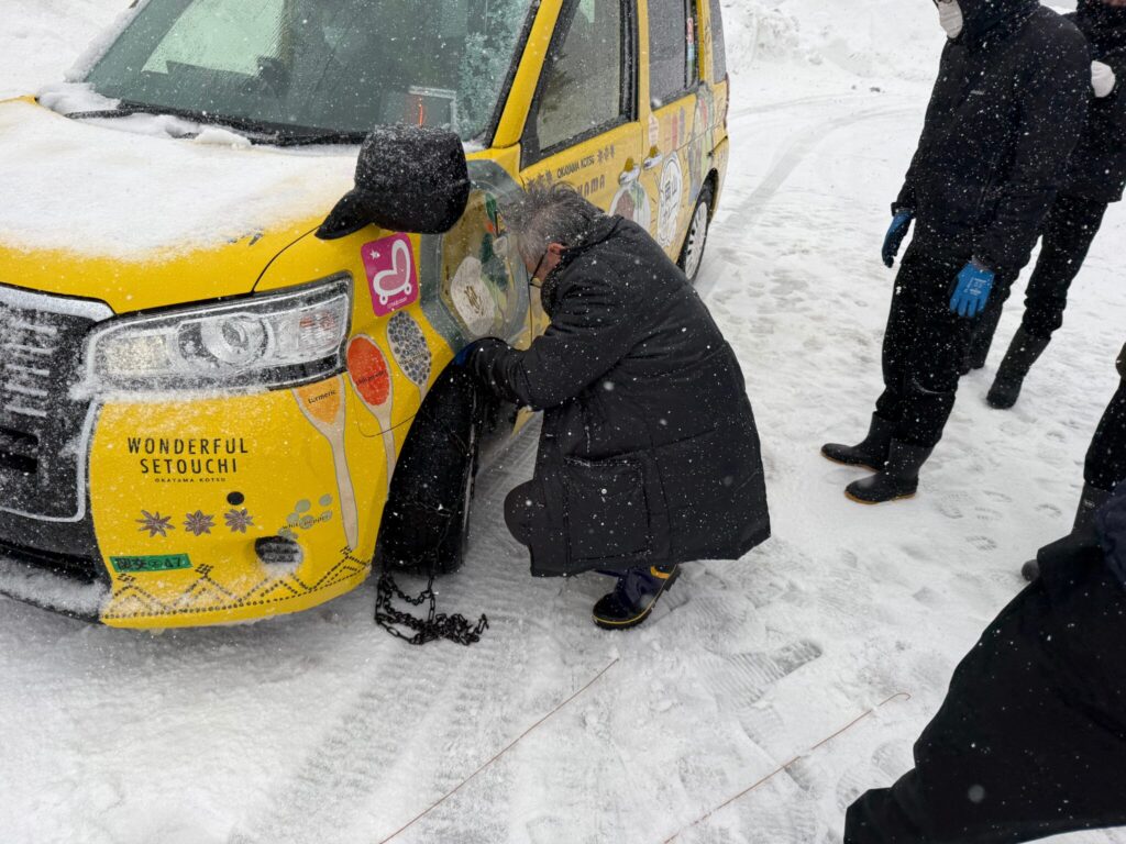 実際に積雪した環境の中で、運転操作やチェーンの着脱方法を学ぶ貴重な機会となりました。