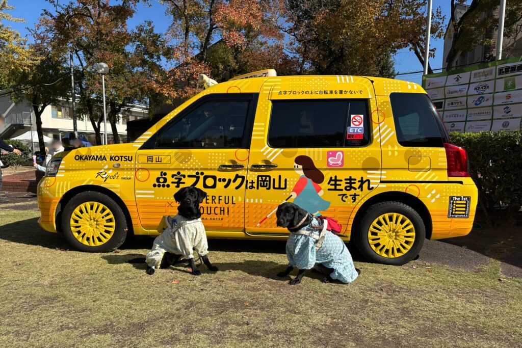 ひらた旭川荘で開催された「みんなでわくわく! 福祉とおかやまフェスタ」にて、点字ブロックタクシーを展示しました。