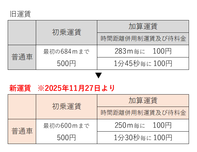 【重要】タクシー運賃改定のお知らせ(2025年11月27日~)