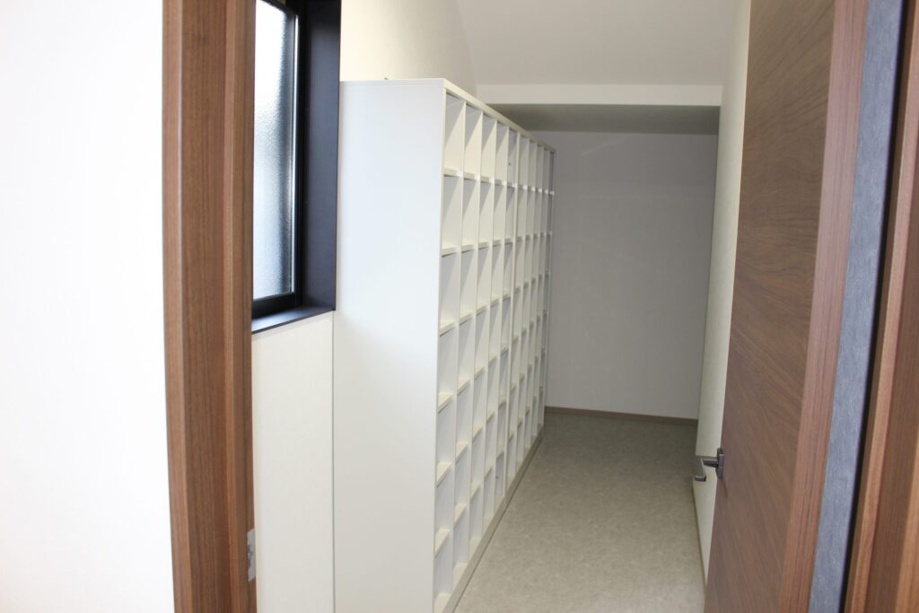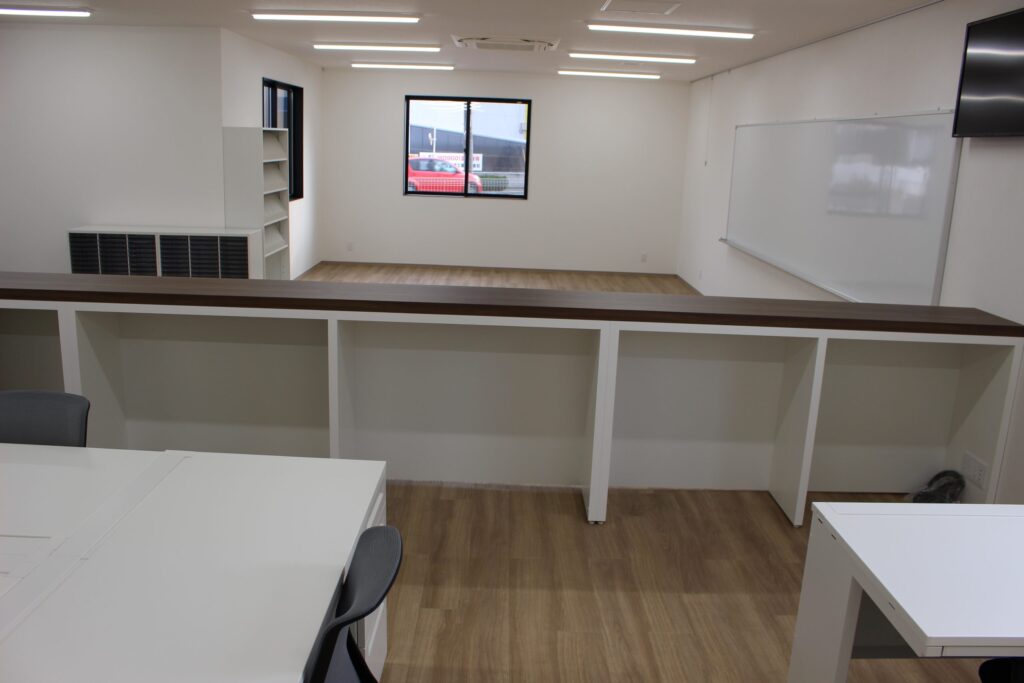 点呼場、休憩室、会議室を大きく設計し、シートカバーを保管するリネン室を新たに設置するなど、コロナ禍でも密になることなく、使いやすい建物が完成いたしました。